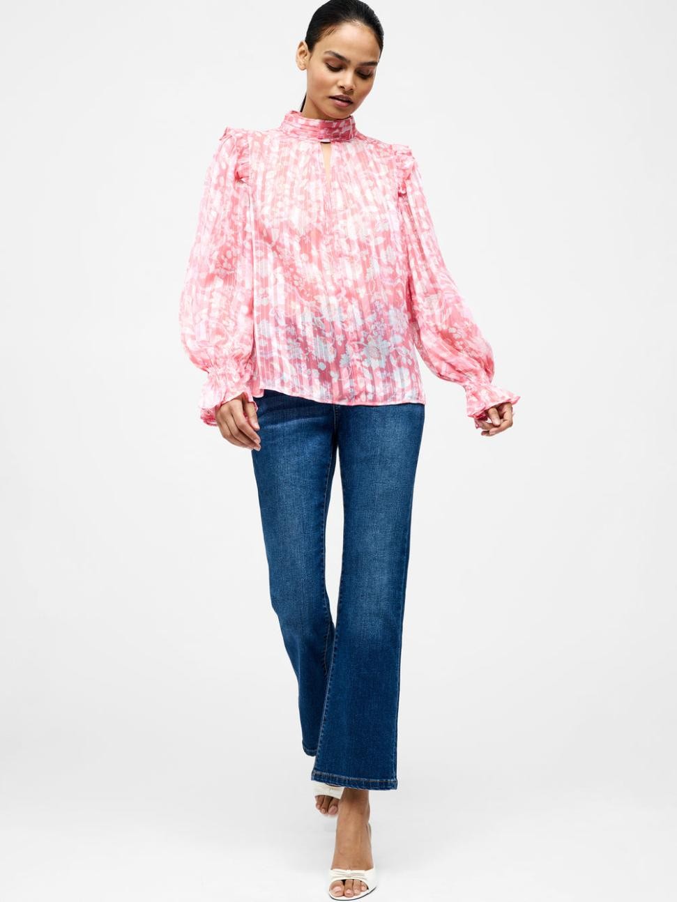 Dlouhý rukávový top Cynthia Frill v růžové barvě | Dámské halenky French Connection