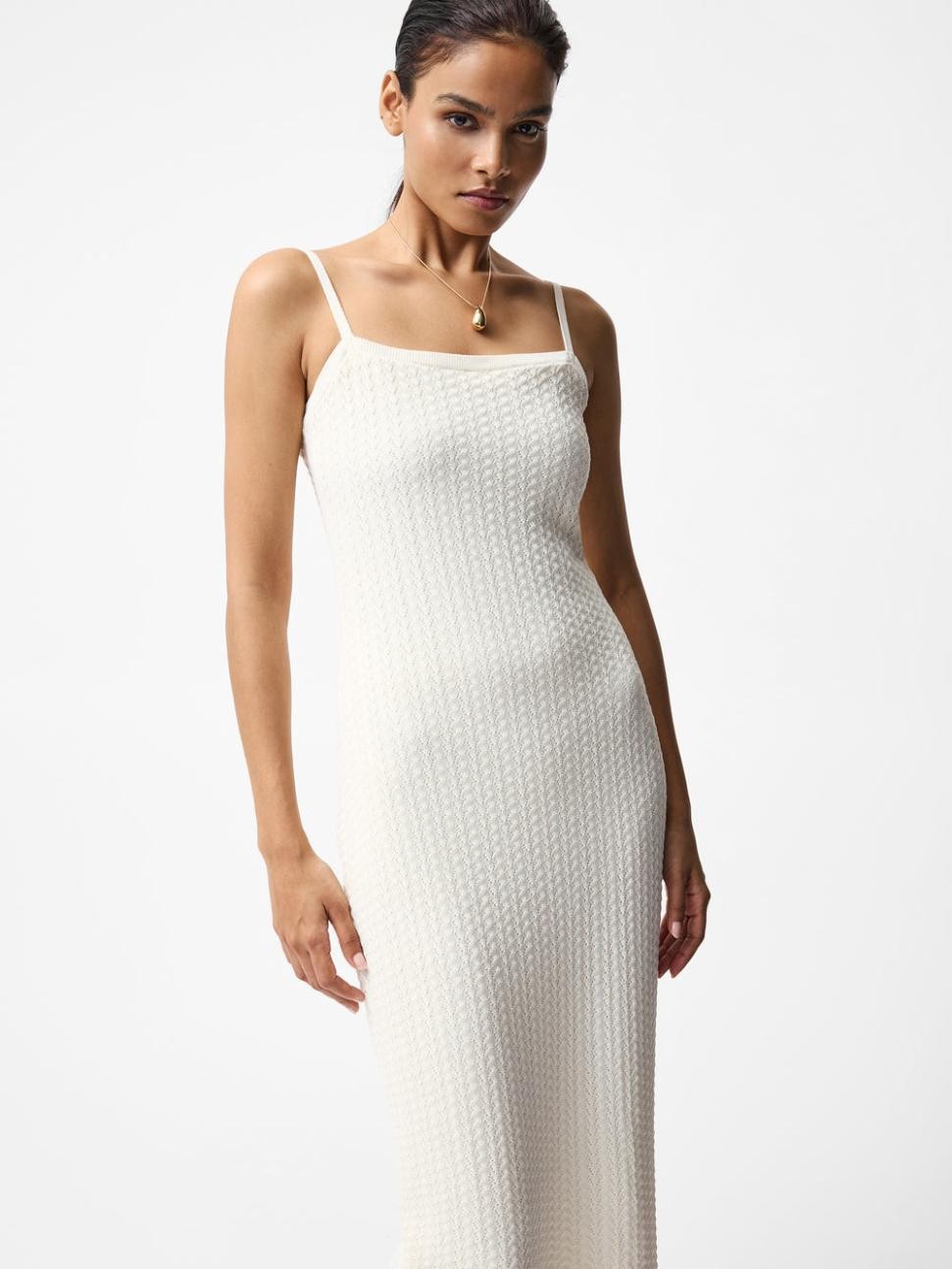 Pointelle Strik Midikjole i Cremefarvet med Bomuldsblanding | Damekjoler fra French Connection