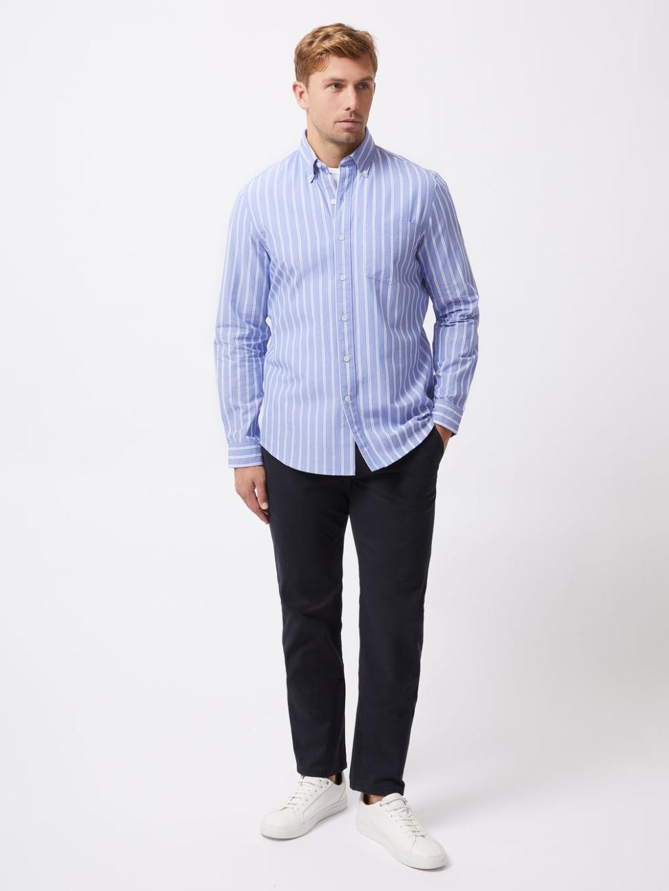 Stribet langærmet skjorte med lomme i blå/hvid | Herre French Connection skjorter
