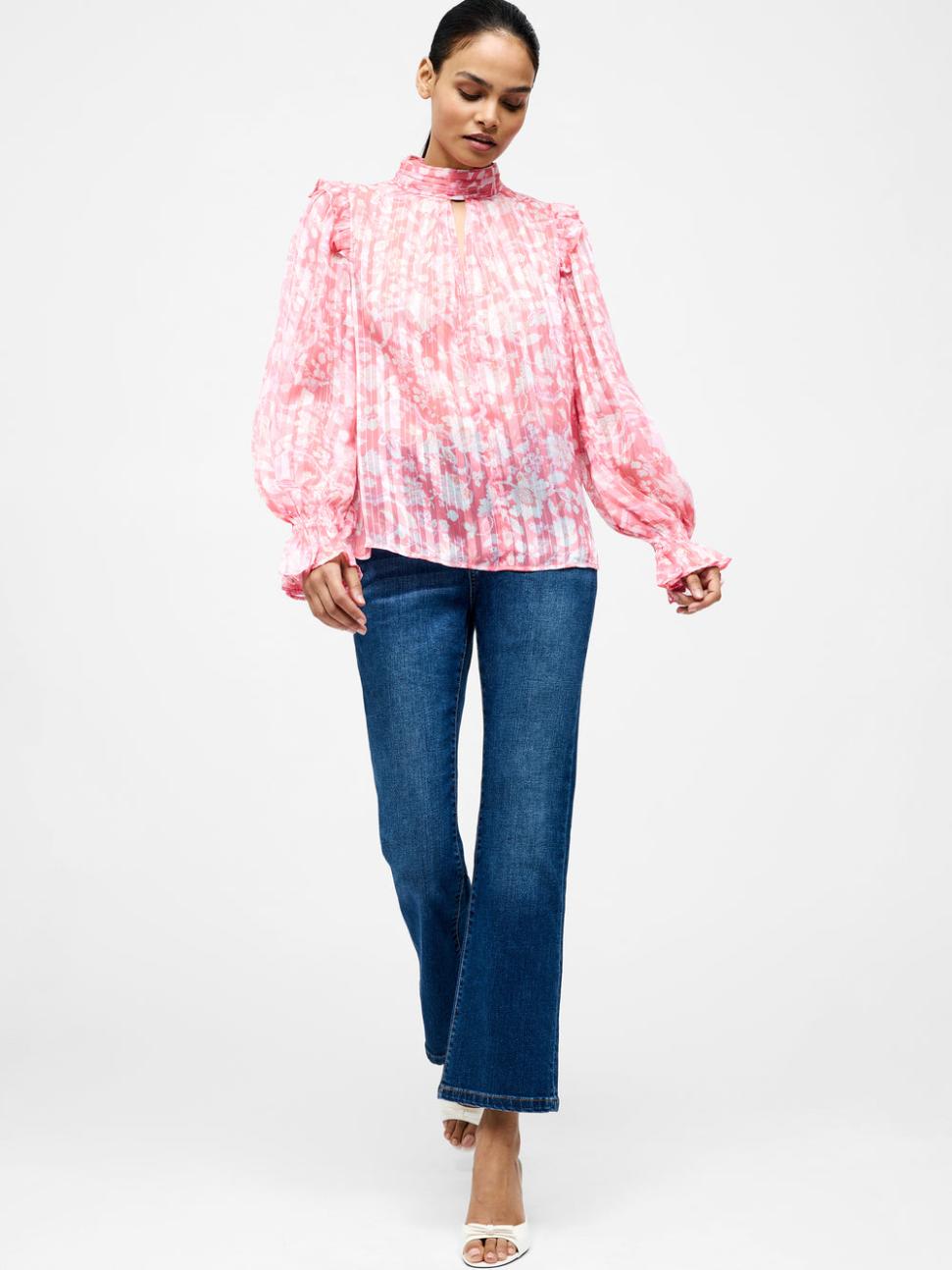 Chemisier à manches longues à volants Cynthia, rose fleuri | Chemisiers French Connection pour femmes