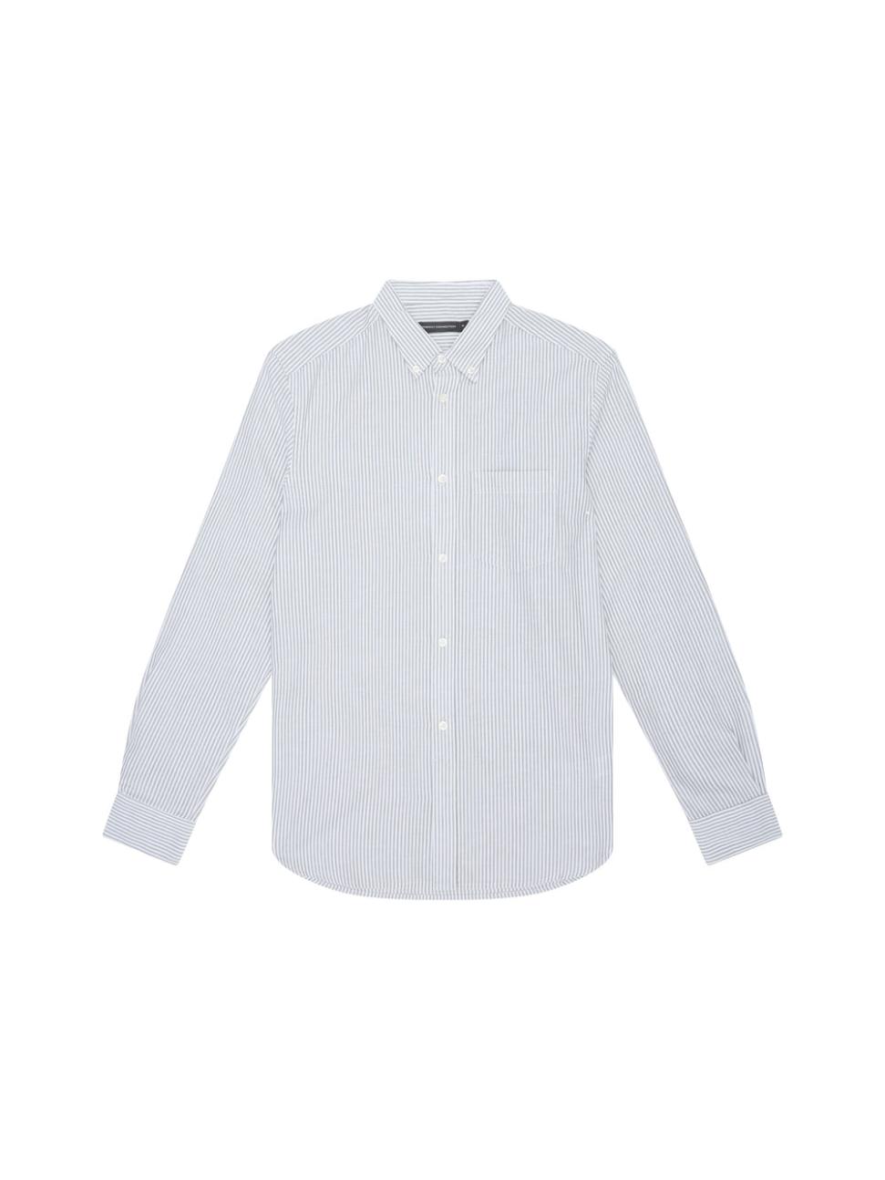 Des rayures qui affirment un style professionnel avec une touche de décontraction. Notre chemise Oxford à manches longues et poche rayée présente un col Oxford, des manches longues à revers et une poche poitrine, le tout agrémenté d'une fermeture boutonnée classique, pour un style à la fois soigné et décontracté.