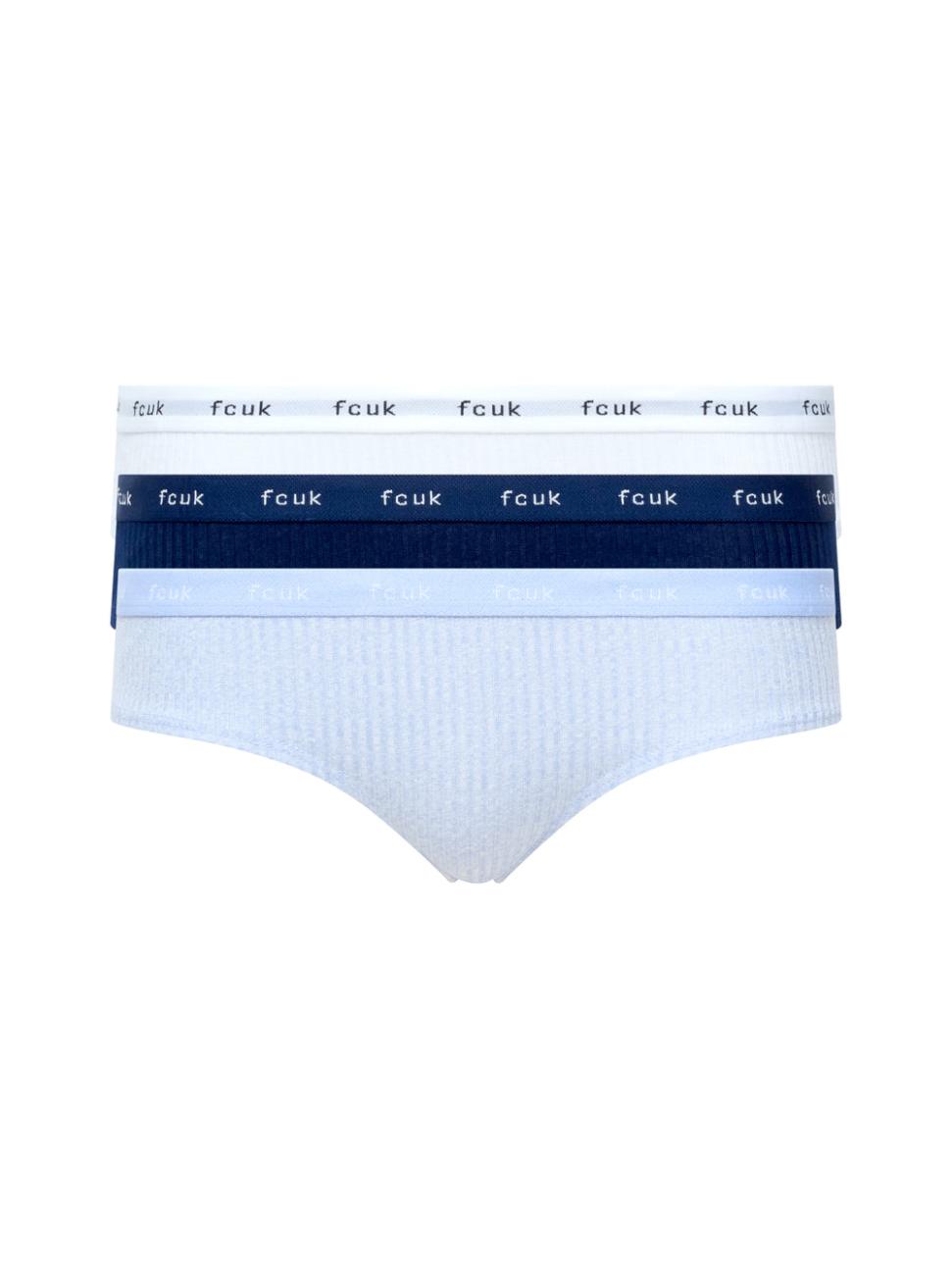 Lot de 3 slips côtelés Fcuk bleu marine/blanc | Sous-vêtements et chaussettes French Connection pour femmes