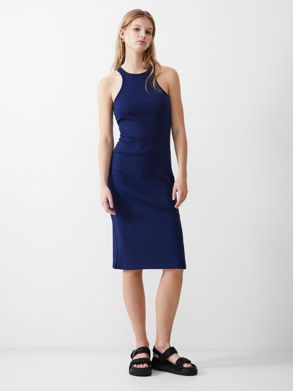 Robe dos nageur côtelée bleu marine foncé | Robes French Connection pour femmes