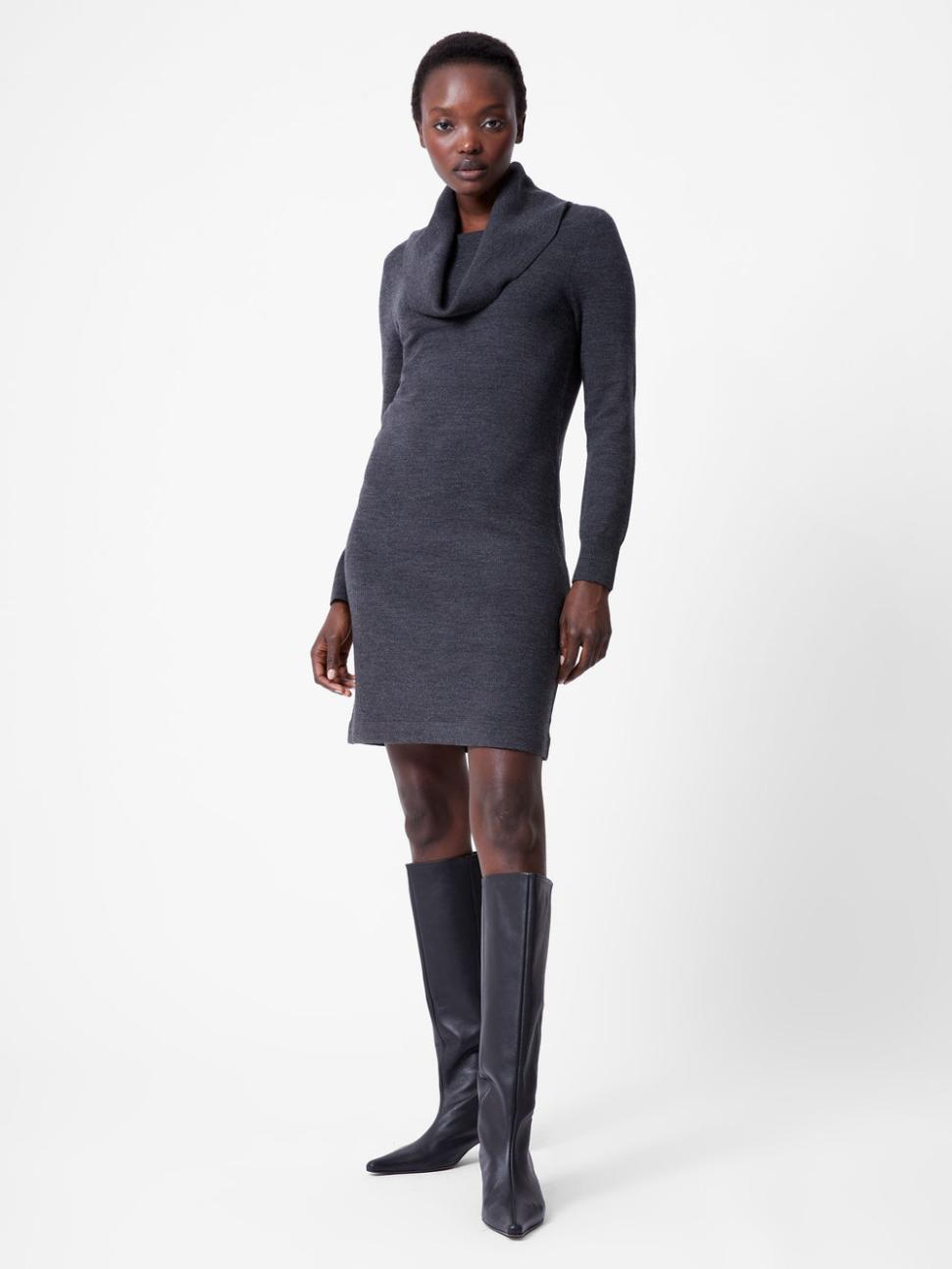 Robe en maille douce à col châle anthracite | Robes French Connection pour femmes