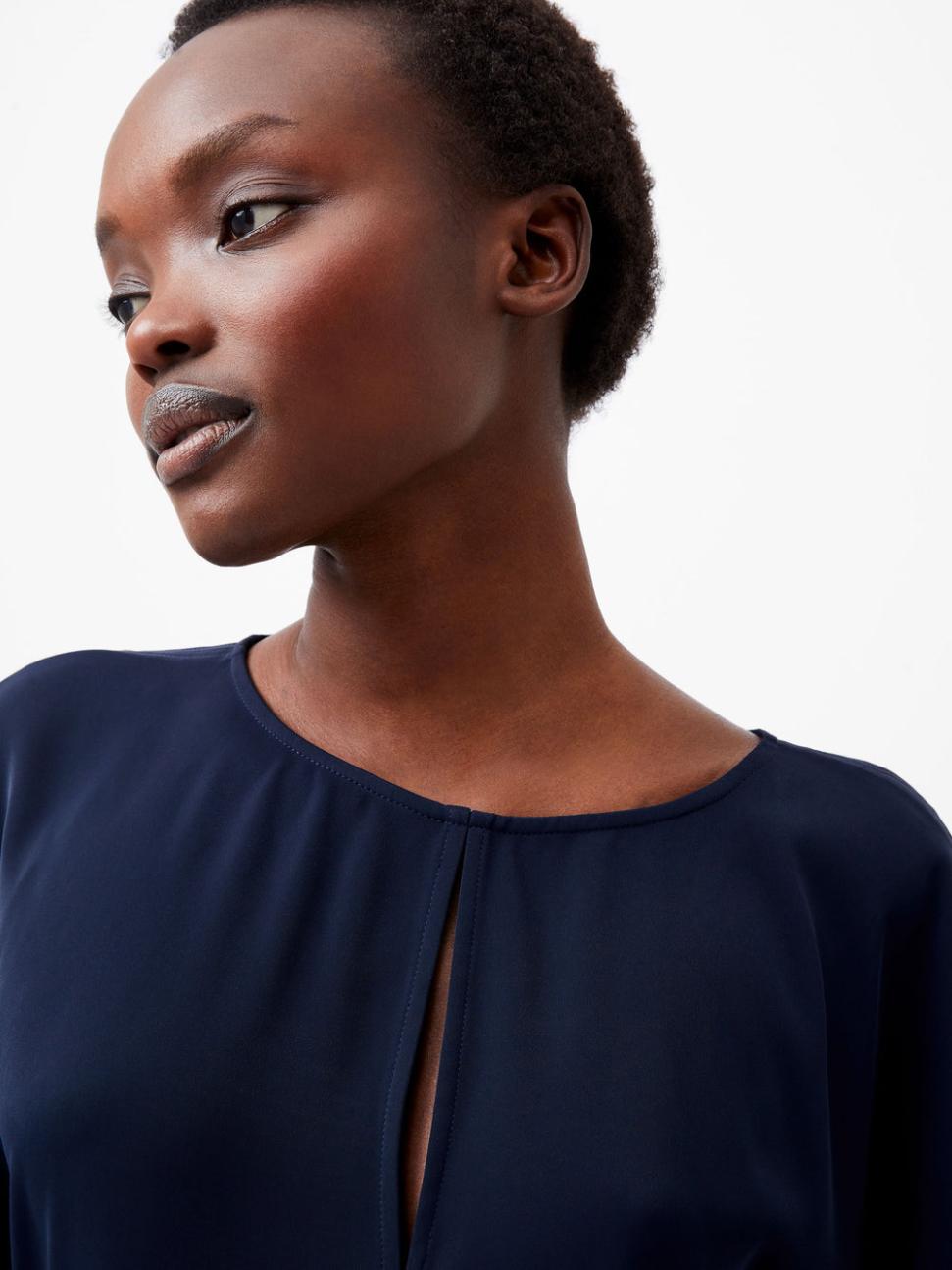 Chemisier Carmen en crêpe recyclé à manches évasées, coloris marine | Chemisiers French Connection pour femmes