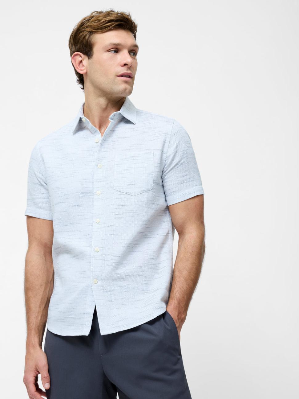 Fionnuar, uigeach agus réidh do gach rud - is í ár Léine Rialta Uigeach Gearr-Mhuinchillí an rogha nua atá agat le haghaidh aimsire te. Déanta as cadás éadrom, tá coiléar, póca cíche agus dúnadh cnaipe síos ar an léine ghearr-mhuinchillí seo, i bailchríoch uigeach.