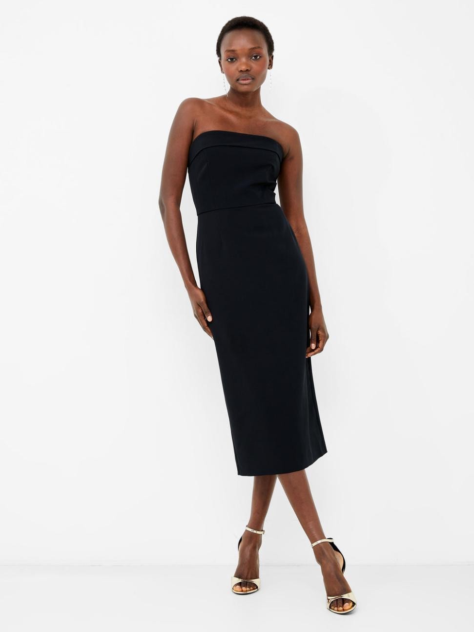 LBDはもうおしまい。Echoクレープバンドゥミディドレスは、時代を超えた洗練されたスタイルで、これからの季節にぴったりです。このミニマルなミディドレスは、滑らかな生地で作られたストラップレスのシルエットで、シックなバックスリットが背中のジップでしっかりと留められています。このブラックドレスは、結婚式のゲストドレスとして、またはカレンダーを埋め尽くすRSVP(返信用メッセージ)に最適です。控えめなスタイルなので、ジュエリーとの相性も抜群です。