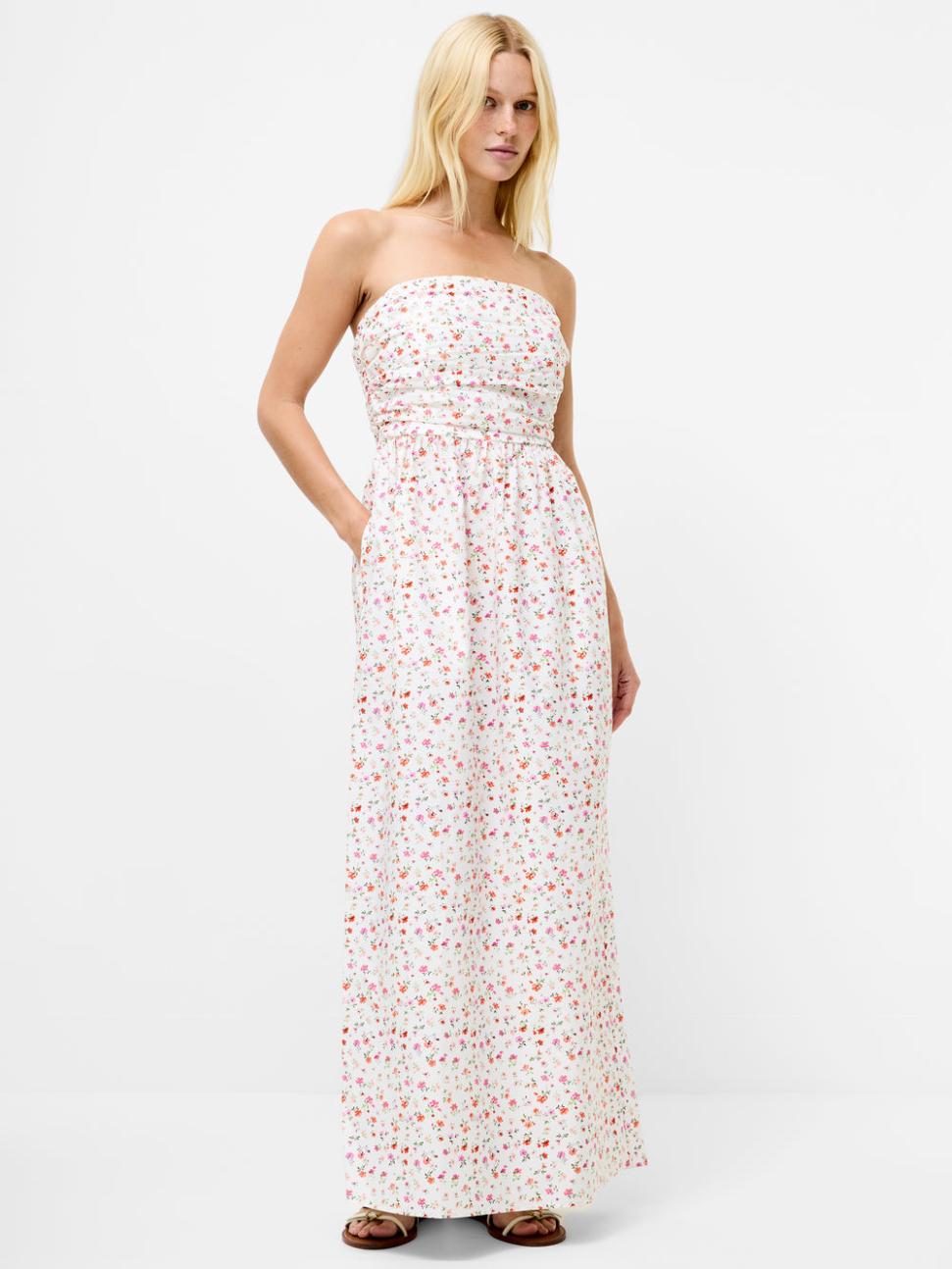 お気に入りの花柄アイテムに、ぜひご注目ください。Nomiコットン バンドゥ マキシドレスは、立体的なルーシュボディスと流れるようなフルレングススカートに、可憐な花々をあしらいました。サイドポケットもさりげなくあしらわれています。