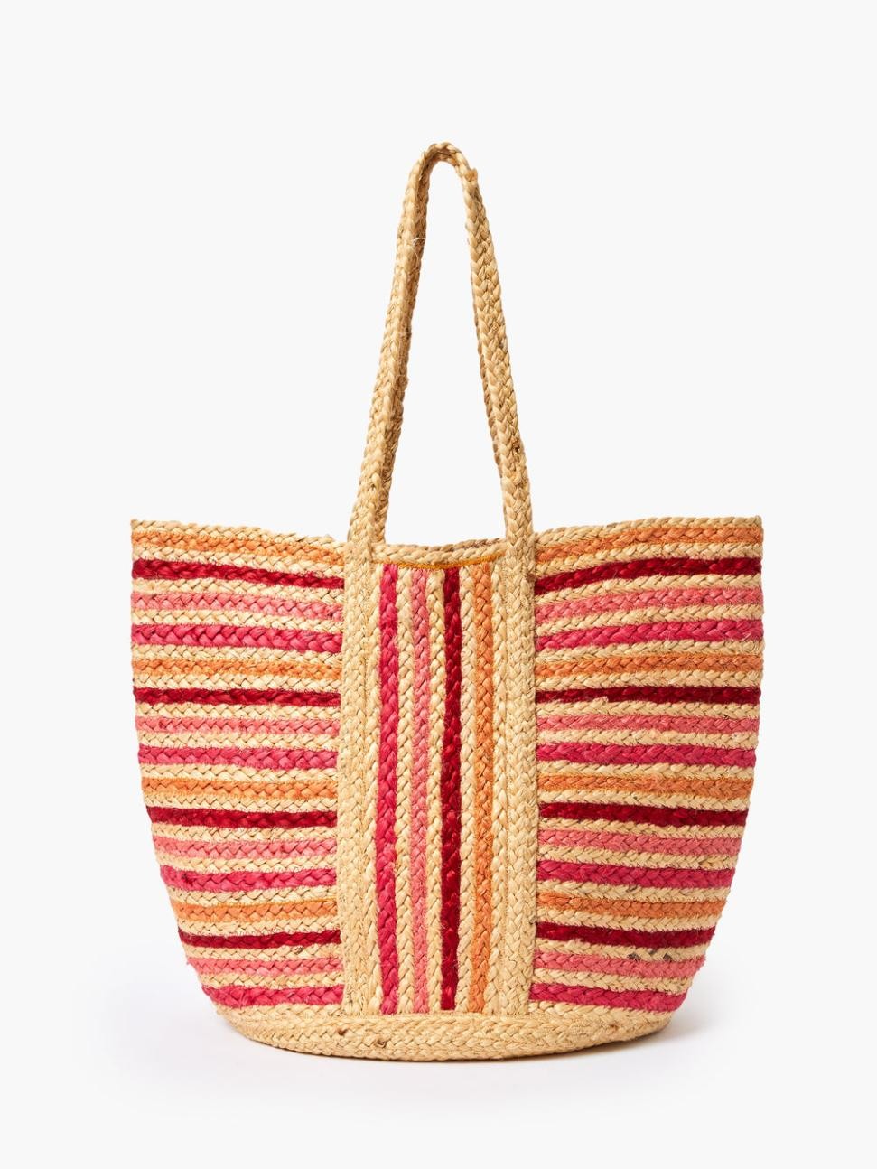 Raffia Stripes Beach Bag Red Multi | Women French Connection Bags And Purses