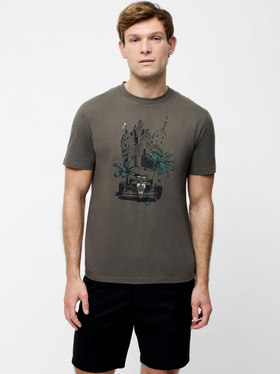 T-shirt med racerbilsgrafik i kaki | Herr T-shirts och pikétröjor från French Connection