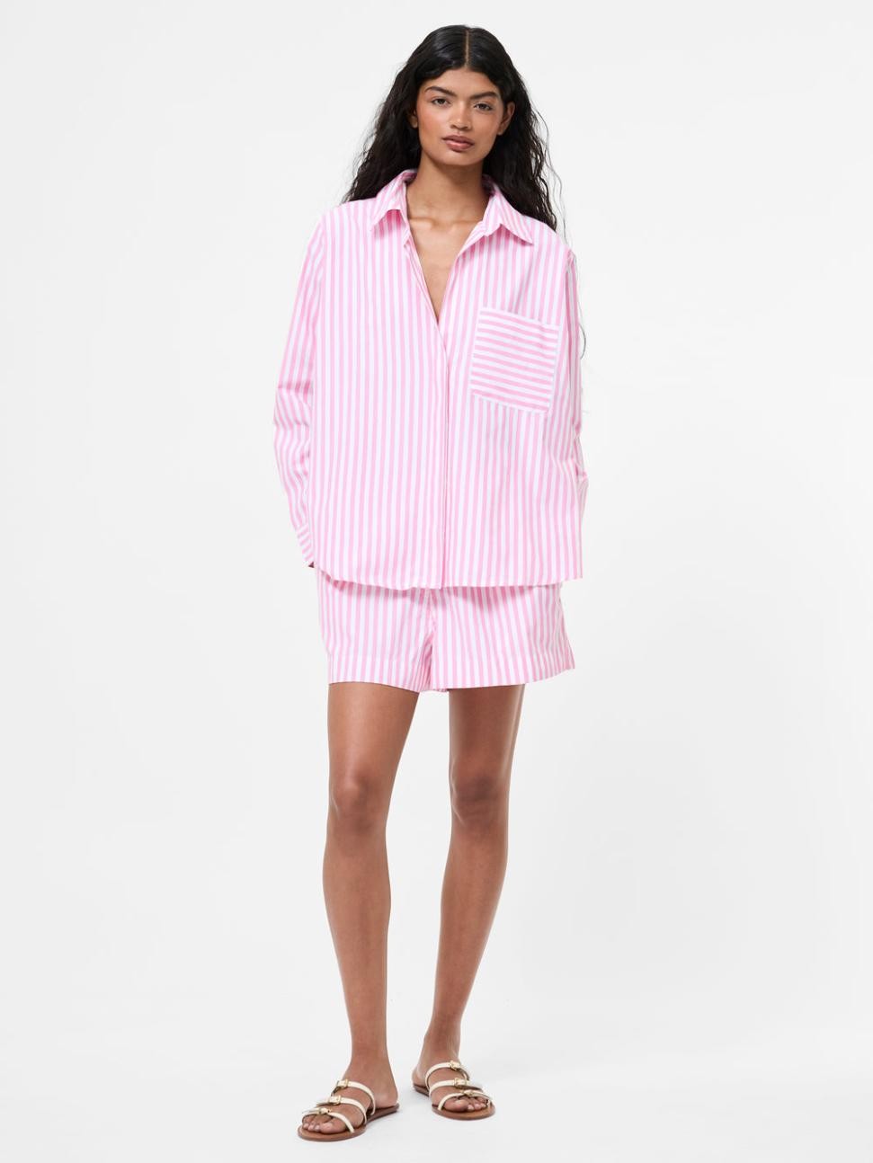 Randig Avslappnad Popover Skjorta Rosa/Vit | Dam French Connection Skjortor