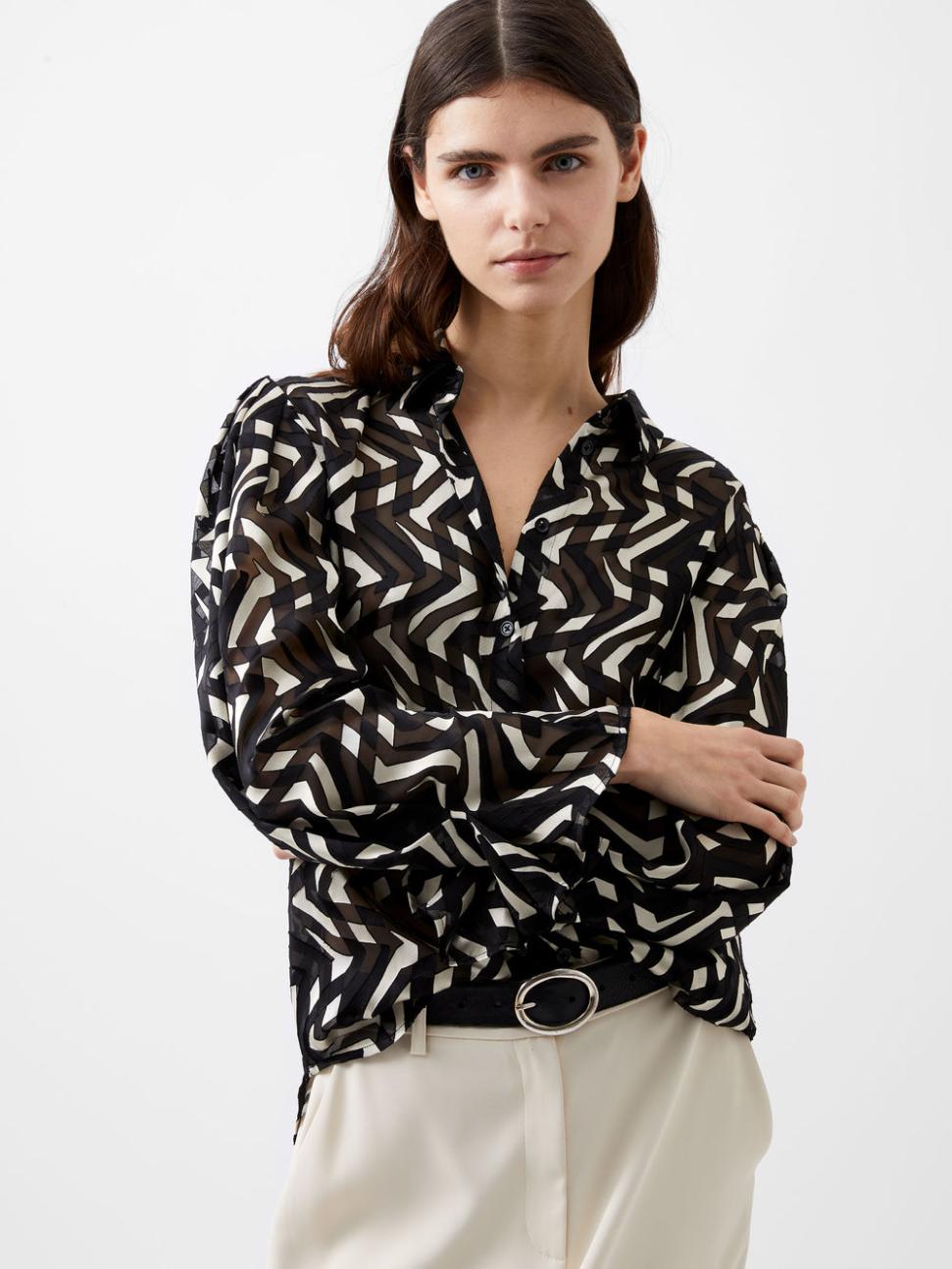 Diandra Satin Devore Top Black/cream | Women French Connection Shirts