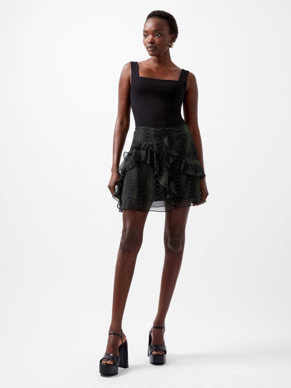 Grace Artemis Frill Mini Skirt Blackout/vivid Green | Women French Connection Skirts